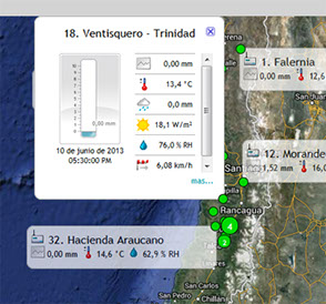 Las 47 estaciones de Meteovid (44 de tecnología Adcon y 3 Datataker) entregan a sus usuarios información climática en línea de las principales variables meteorológicas; temperatura, humedad relativa, precipitación, velocidad del viento y radiación solar, como también cálculos de evapotranspiración de referencia, días grado, horas frío y estadígrafos de las variables antes mencionadas.